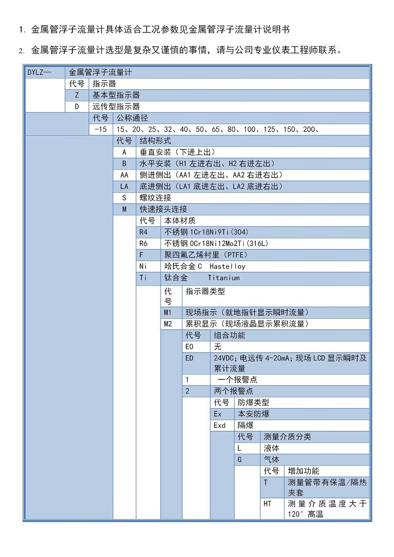 金屬管轉子流量計