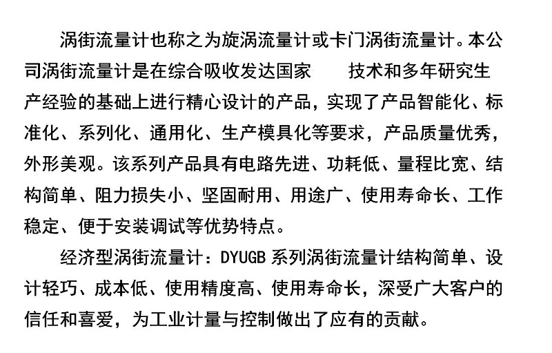 1. 渦街流量計(jì)具體適合工況參數(shù)見(jiàn)渦街流量計(jì)說(shuō)明書(shū)